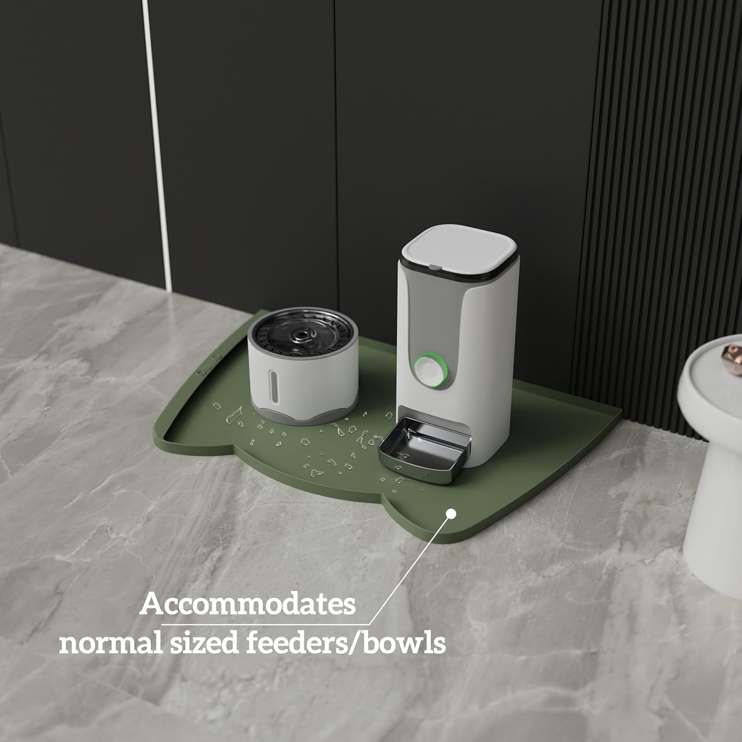OHMO Dog Food Mat(Camo Green, 24 * 15'') w/Residue Collection Pocket Silicone Pet Feeding Mat for Floor High Edges Anti Spills Waterproof Cat Water Bowl Tray, Easy Clean Placemat
