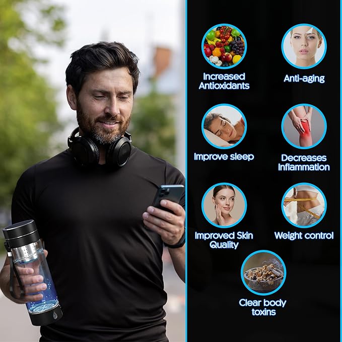 - Stylish, Portable and Versatile - Featuring a sleek, stylish design, our hydrogen ion water bottle comes with a handy strap for easy portability. Whether you're hitting the gym, hiking trails, or commuting to work, take your hydrogen water with you wherever you go!