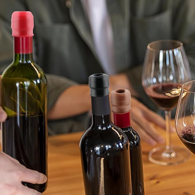 - 【AIR TIGHT】The silicone stopper fits closely to your bottle mouth and has a good seal, keeps your wine fresh and preserves the taste for weeks. Wrapped in the opposite direction, double seal design makes it tighter and prevents falling off.