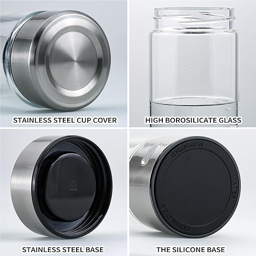 - Safe & Durable: Safe food grade material, the portable healthy water bottle is made of double-layer fine environmentally-friendly food-grade high borosilicate glass, which has super durability and safety. Just press lightly, the blue light on the bottom lights up and the hydrogen gas decomposes from the water.