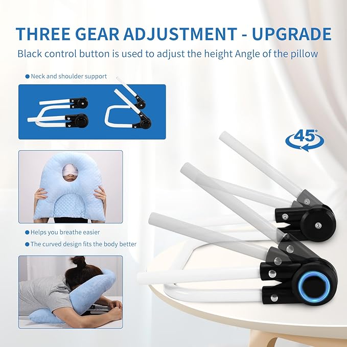- New Upgraded Face Down Pillow - Our after-surgery pillow has been modified and improved many times, with a reinforced bracket and three-level adjustment to provide the most comfortable face-down pillow. The face pillow includes cotton filling and has an invisible zipper to adjust the cotton according to your needs, keeping it soft and comfortable when you use it.