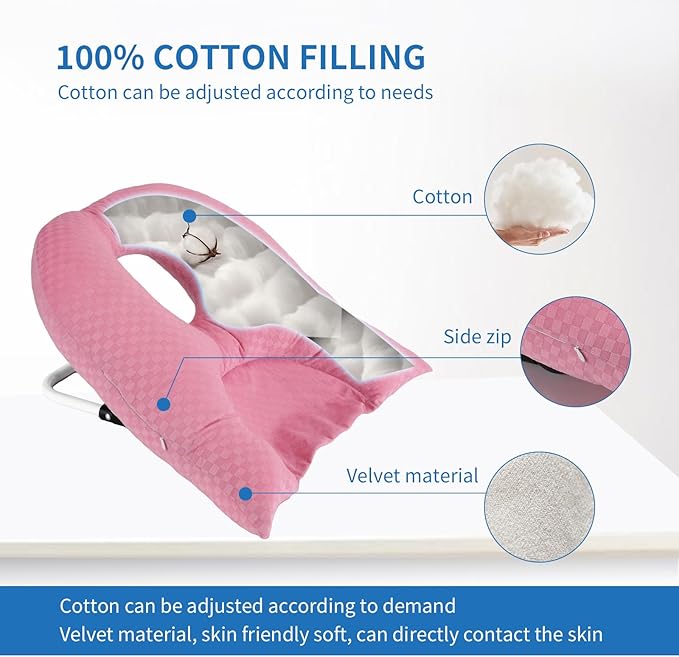- New Upgraded Face Down Pillow - Our after-surgery pillow has been modified and improved many times, with a reinforced bracket and three-level adjustment to provide the most comfortable face-down pillow. The face pillow includes cotton filling and has an invisible zipper to adjust the cotton according to your needs, keeping it soft and comfortable when you use it.