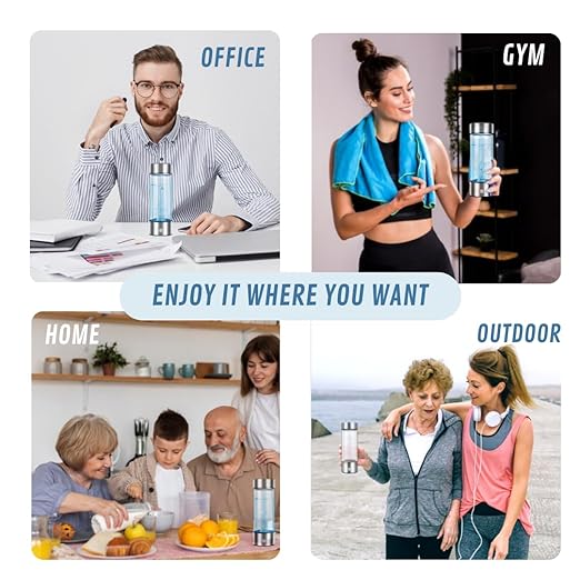- Ideal for any occasion, the hydrogen-rich water bottle boasts a convenient one-button start/stop feature, making it perfect for diverse environments like the office, workplace, or gym sessions.