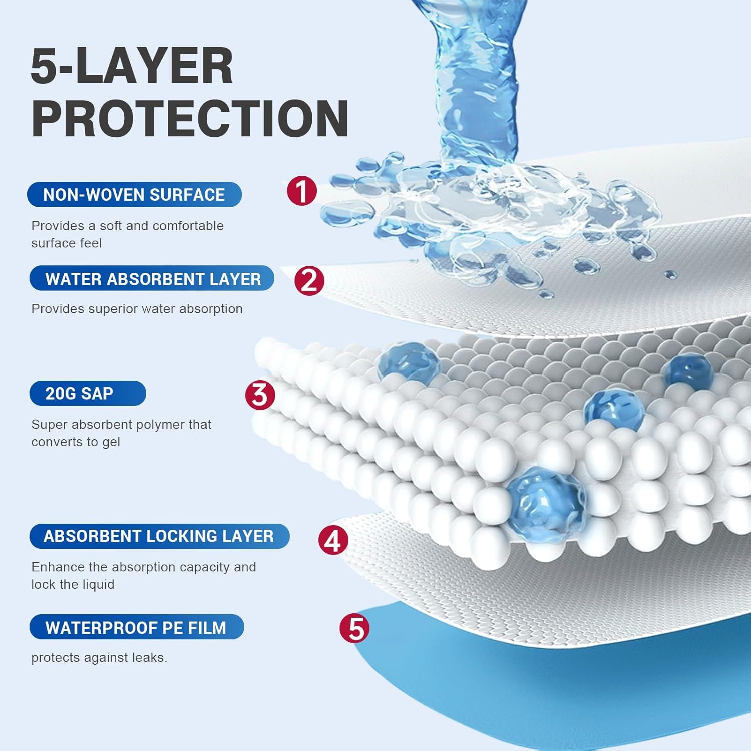 - BREATHABLE & COMFORTABLE: The surface of this disposable incontinence bed pad is made of super soft diamond shaped non-woven fabric to provide better comfort to the touch so that the skin can stay dry and provide comfortable sleep throughout the night