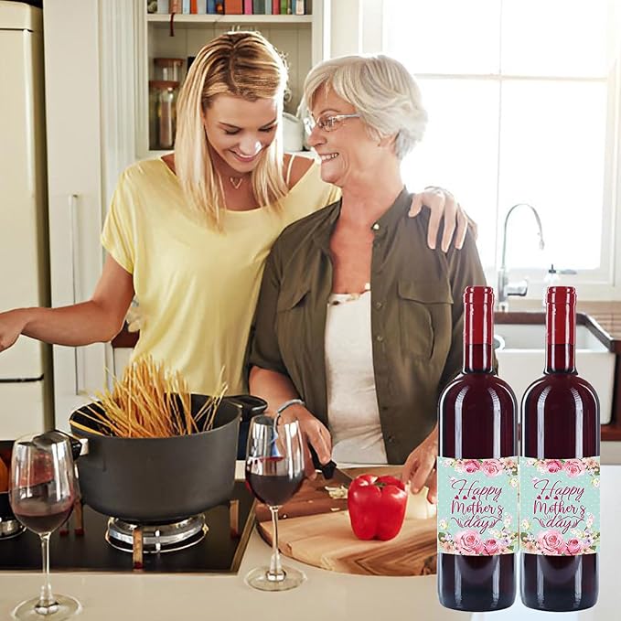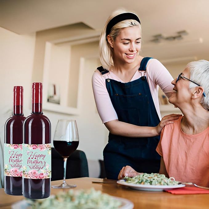 24pcs Mothers Day Wine Bottle Labels Stickers Party Wine Bottle Stickers Decorations Wine Bottle Cover Labels Happy Mothers Day Party Supplies