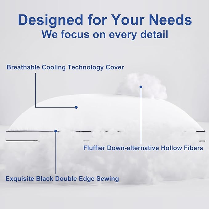 - ✅【Soft and Breathable Material】The pillows are made of premium 3D+7D breathable microfiber material, which has better ventilation and heat dissipation and prevents you from overheating during sleep. The sleeping surface of the pillows are smooth and skin-friendly, creating a relaxed and comfortable sleeping environment.