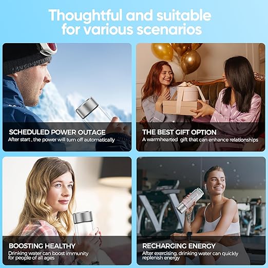 - 【Multicolored Lights】Our hydrogen water bottle features dynamic multicolored lights during operation, enhancing water quality while delighting the senses. This innovation perfectly blends health benefits with visual enjoyment
