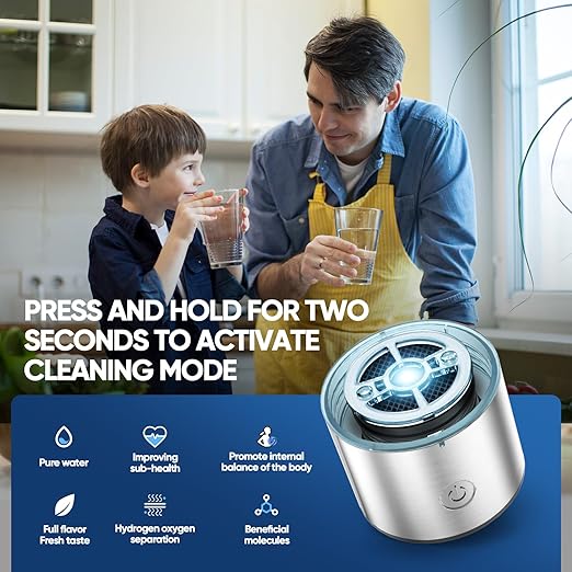 - 【Easy to Use and Clean】Activate our hydrogen water bottle with just one press, accompanied by multicolored lights. Press and hold for two seconds to activate the cleaning mode, accompanied by a red light