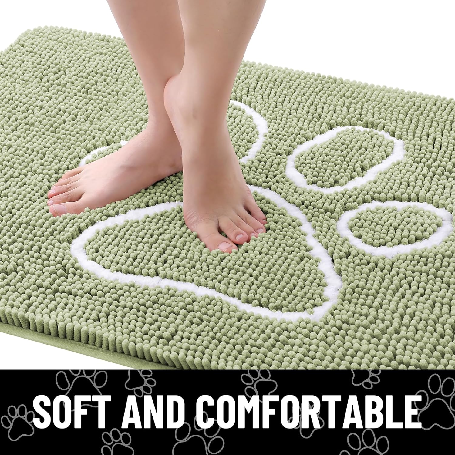 Smiry Dog Door Mat for Muddy Paws, Absorbent Dirt Trapper Non Slip Quick Dry Washable Chenille Mat for Mud Dogs, Entry Rug for Indoor and Outdoor (30x20 Inches, Sage Green)