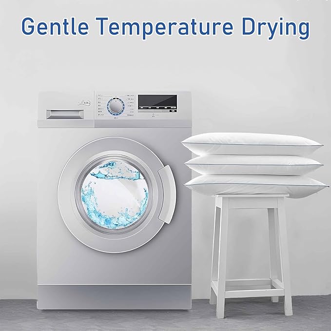 - WHAT YOU GET - 2 pack of king size comfy bed pillows. Gentle washing with cold water. Gentle temperature drying.