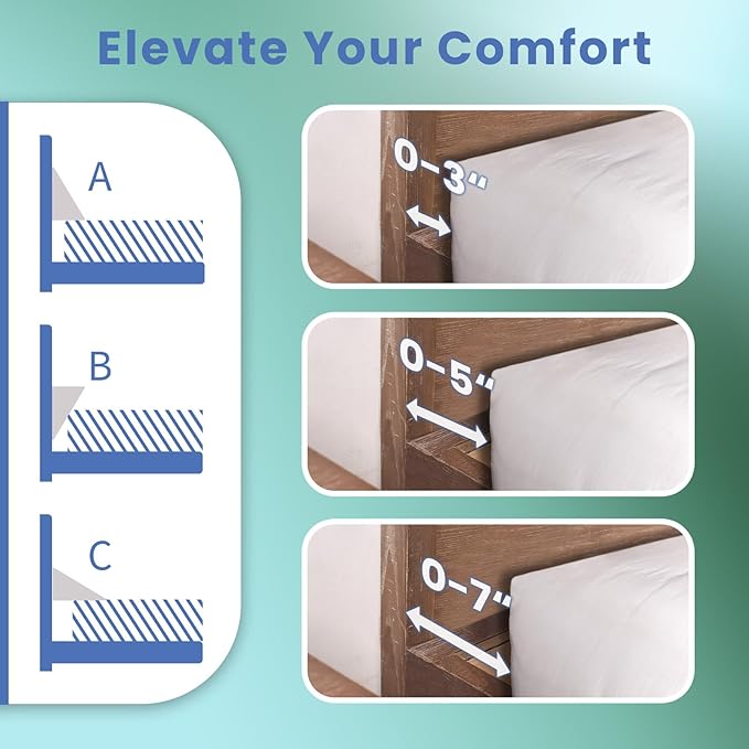 - PERFECT PILLOW WEDGE FOR HEADBOARD GAP: Our bed wedge filler, designed to fit the contours of the body, offers not only a solution for filling the bed gap but also provides support as a backrest for a more comfortable posture while reading. Additionally, this bed pillow for sitting up can be used in conjunction with a standard bed pillow to alleviate shoulder and neck fatigue and soreness during sleep.
