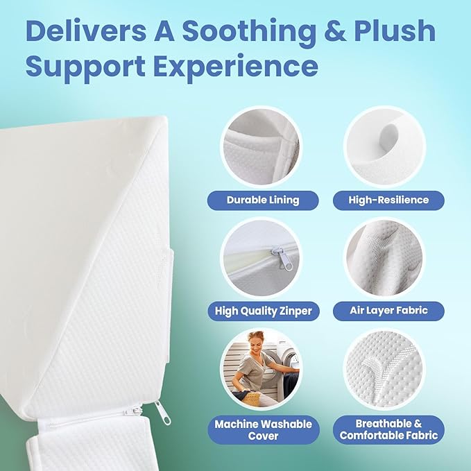 - MACHINE WASHABLE: The wedge bed pillow headboard cover features a high-quality zipper, making it easy to remove for machine washing. This convenience allows for effortless cleaning and maintenance, ensuring that you can keep the pillow fresh and hygienic at all times for a more comfortable sleep.