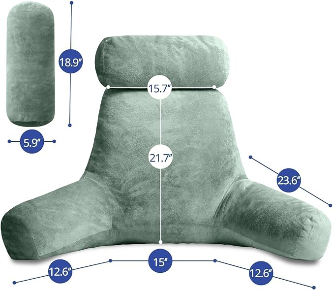 Sasttie Reading Pillow for Sitting in Bed Adult, Extra Large Back Pillow for Bed, Backrest Pillow with Detachable Head Support Cushion, College Dorm Essentials for Girls and Boys, Sage