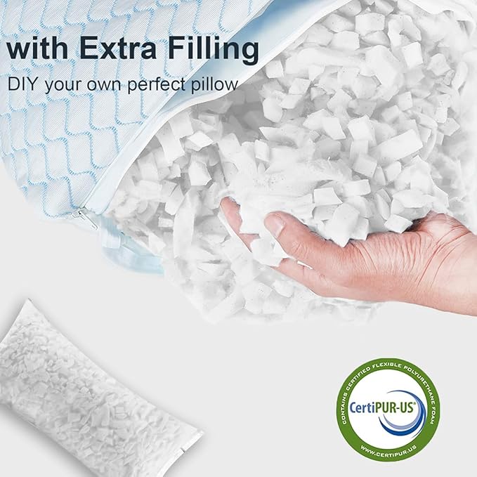 - Adjustable Loft and Firmness - Our bed pillows provide hotel-quality softness, and offers firm support. Whether you prefer soft pillows or firm pillows, you'll enjoy it. Unlike traditional pillows, the shredded memory foam pillows features a zippered inner and outer cover, you just need to add or remove foam filling to suit your size, shape or sleep position, find the perfect comfort level and enjoy a five-star hotel luxury experience at home.