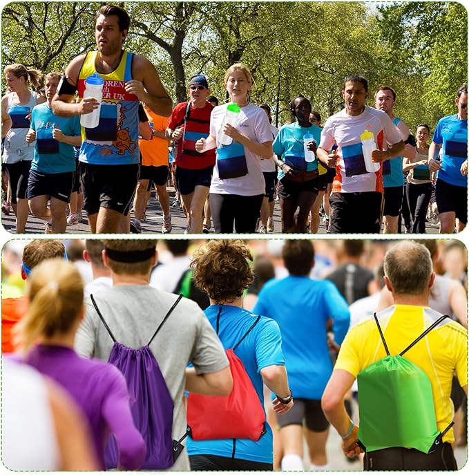 - Enough to Use and Share: the package includes 25 pieces of clear water bottles bulk, coming in clear body and colorful bottle cup lids, dark purple, blue, red, green and yellow, 25 pieces of drawstring backpacks in 5 colors, 5 pieces of each color, enough to meet your daily use and replacement needs, and you can also share them with your family members