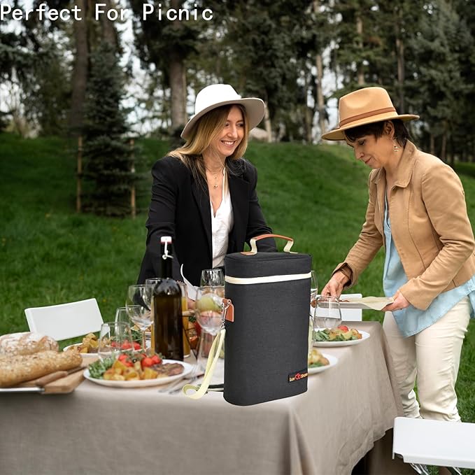 - 【Elegant Appearance】Wine bottle bag classy looking in an elegant retro style and well constructed.Insulated wine bag is great for warm weather.This wine bottle cooler allows you to take it with you chilled and safely.