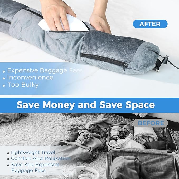- No Extra Baggage Fees - Our travel pillow can fit clothes for 3 days. It's not just a comfortable pillow during use but also helps avoid high luggage check-in fees. If you love traveling, our travel pillow is definitely a must-have travel essential for you.