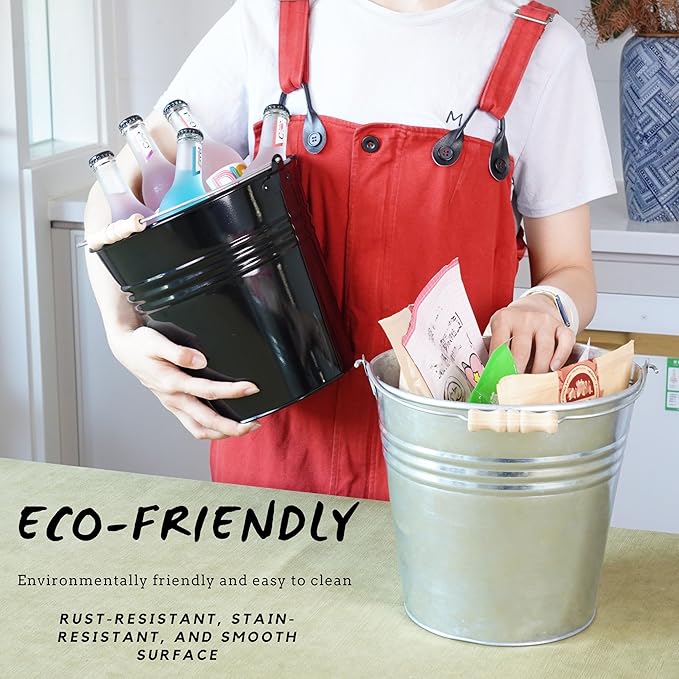 - 【Environmentally Friendly and Easy to Clean】The smooth surface of the galvanized bucket resists stains and rust, making it easy to clean. After use, simply rinse with water or wash with soap. Storage is convenient and they can be easily stored in a pantry or cupboard.