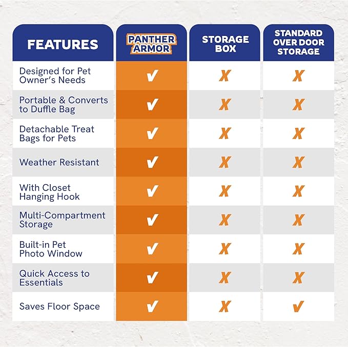 Panther Armor Dog Travel Bag- Hanging Dog Organizer & Pet Storage Tote Bag for Supplies,mWaterproof Door Storage & Closet Organizer, Food & Treat Container for Travel Accessories