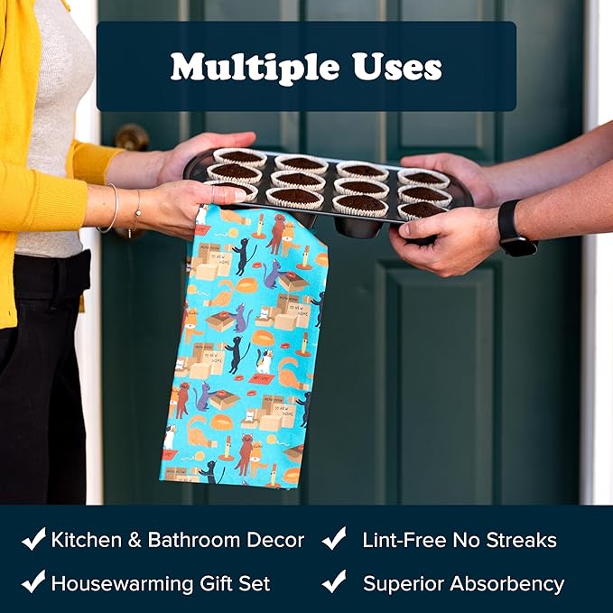 Dog and Cat Kitchen Towels - Dog and Cat Dish Towels for New Home Decorations - Gifts for Dog Moms and Cat Dads (Home Sweet Home)