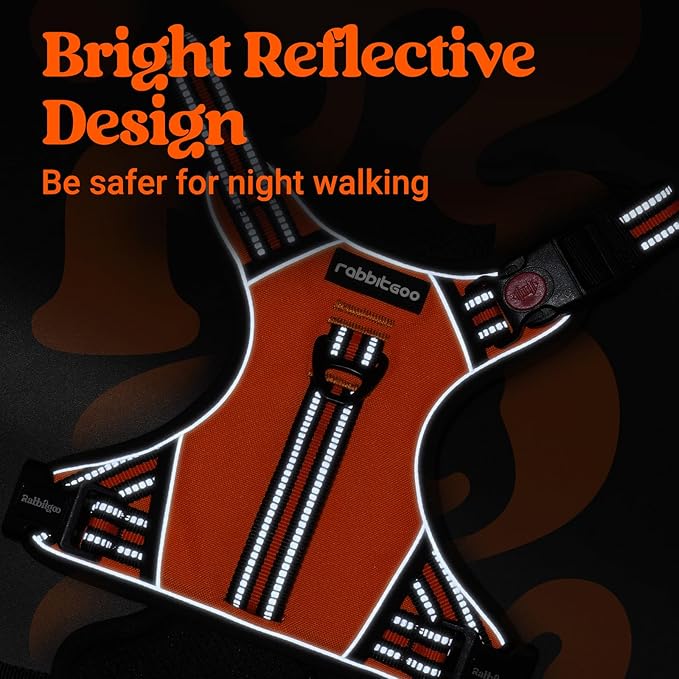 rabbitgoo Dog Harness Small Sized Dog, No Pull Pet Harness with Soft Padded Handle, Adjustable Reflective Vest with 3 Buckles, Easy Walking Harness with 2 Leash Clips, Orange, S