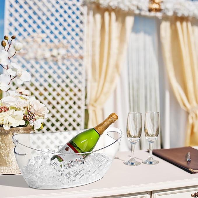 - [Bulk Catering Pack]: 5.5L clear oval drink cooler beverage buckets with handles come in a 2 pack so you can stock a mule station and a mimosa bar with these party buckets