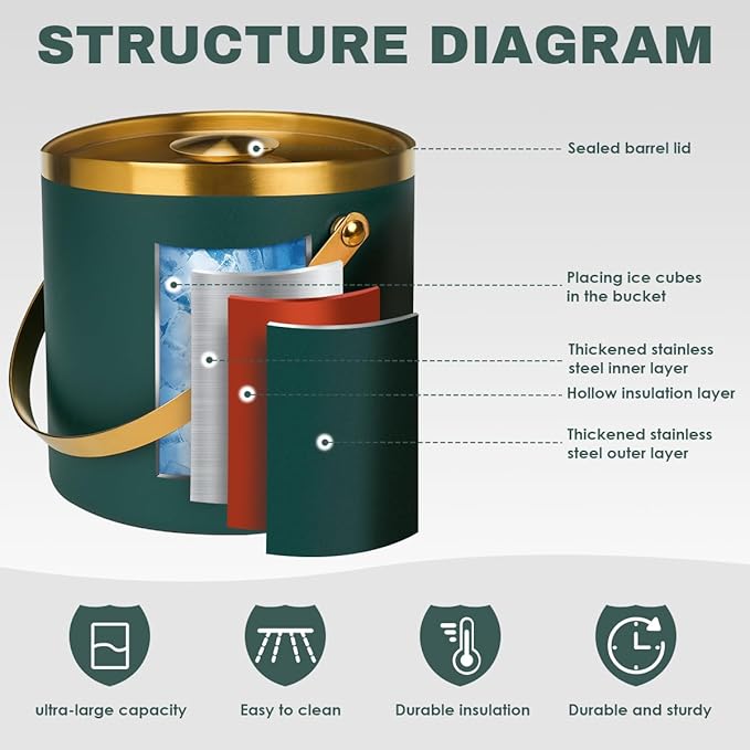 - 2. Made of high-quality stainless steel, this metal ice bucket is durable and easy to clean, making it ideal for both indoor and outdoor use.