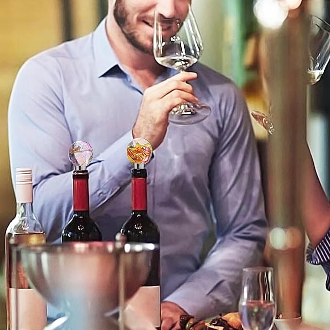 2PCS Wine and Beverage Bottle Stoppers with Galaxy Glass Grip Top, Reusable Wine Saver for or Gifts, Bar, Holiday Party, Wedding