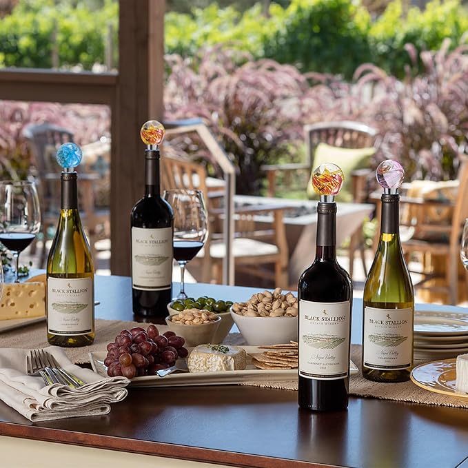 • 【PRODUCT FEATURES】Vcozar novelty murano glass bottle stoppers are made of clear glass with galaxy pattern and anti-rust stainless steel. this wine bottle stopper can seal wine, champagne, beverages, soda water, oil and vinegar. Keep the beverage or liquid in the bottle fresh and not spill out.