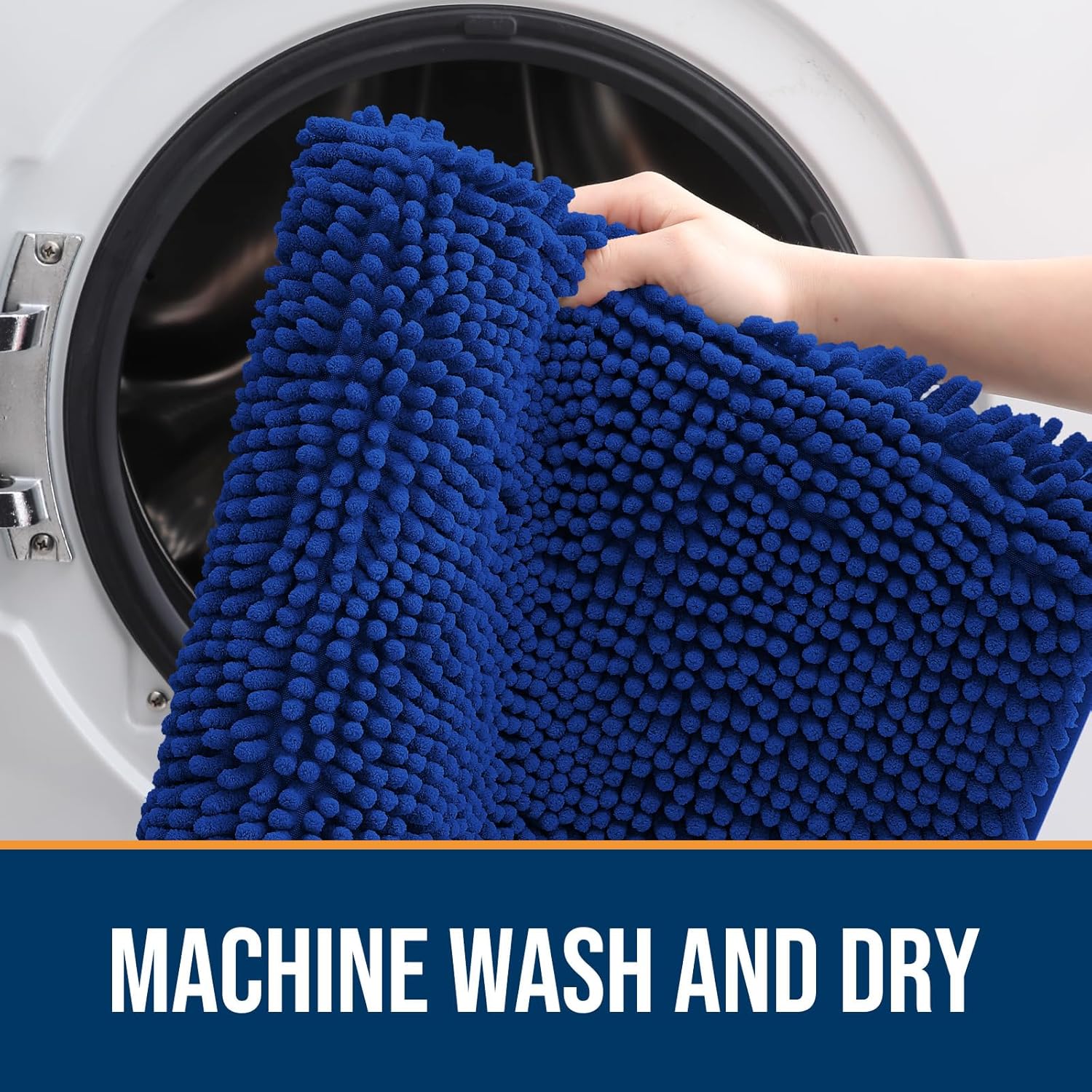 OLANLY Dog Door Mat for Muddy Paws 47x32, Absorbs Moisture and Dirt, Absorbent Non-Slip Washable Doormat, Quick Dry Chenille Mud Mat for Dogs, Entry Indoor Entryway Carpet for Inside Floor, Royal Blue
