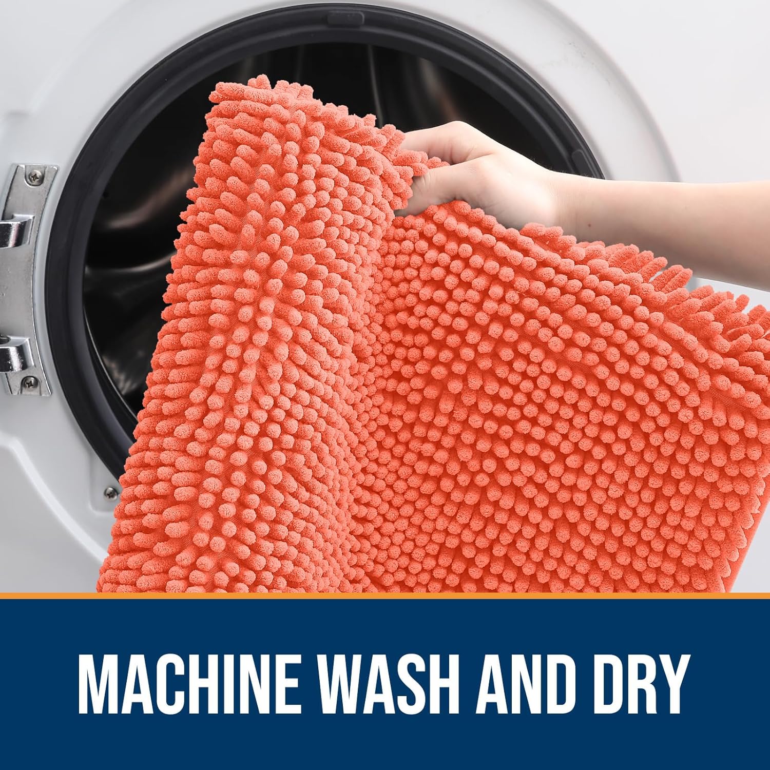 OLANLY Dog Door Mat for Muddy Paws 48x30, Absorbs Moisture and Dirt, Absorbent Non-Slip Washable Doormat, Quick Dry Chenille Mud Mat for Dogs, Entry Indoor Entryway Carpet for Inside Floor, Coral