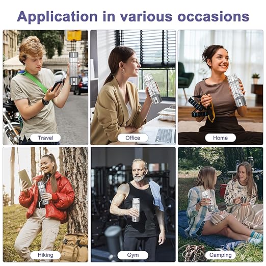 - Dual-Function Design: Pour regular water into the bottle, press the power button, and the bottom light will illuminate as tiny bubbles form in the water. In 3 minutes, enjoy your hydrogen-rich water. Additionally, the bottle includes a nasal inhaler. If you prefer inhaling hydrogen directly, simply insert the nasal inhaler into the top cover interface.