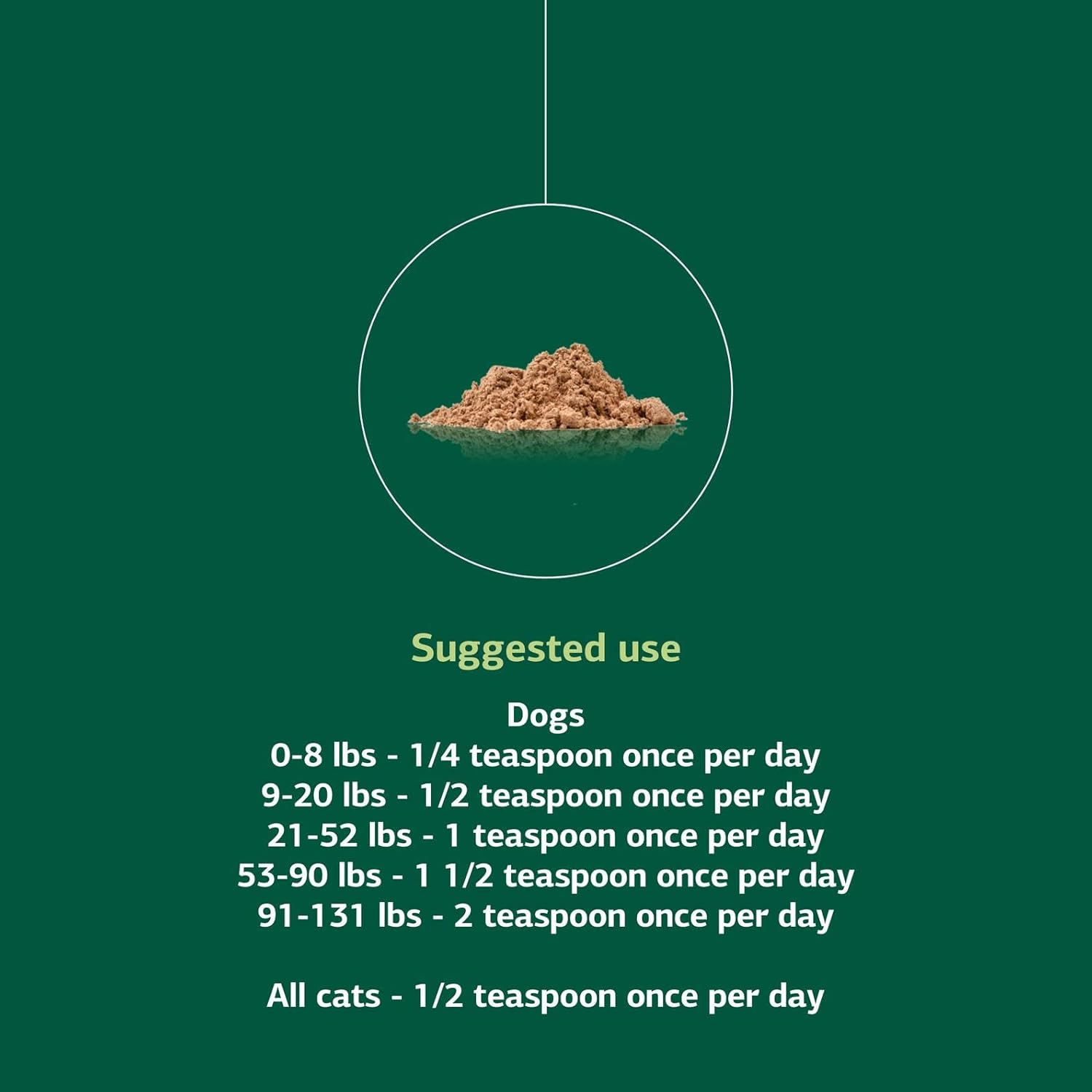 - Supplement Measurement & Dosing: This pet supplement for dogs and cats includes a 1/2 teaspoon scoop for an accurate dosage based on your pet's weight