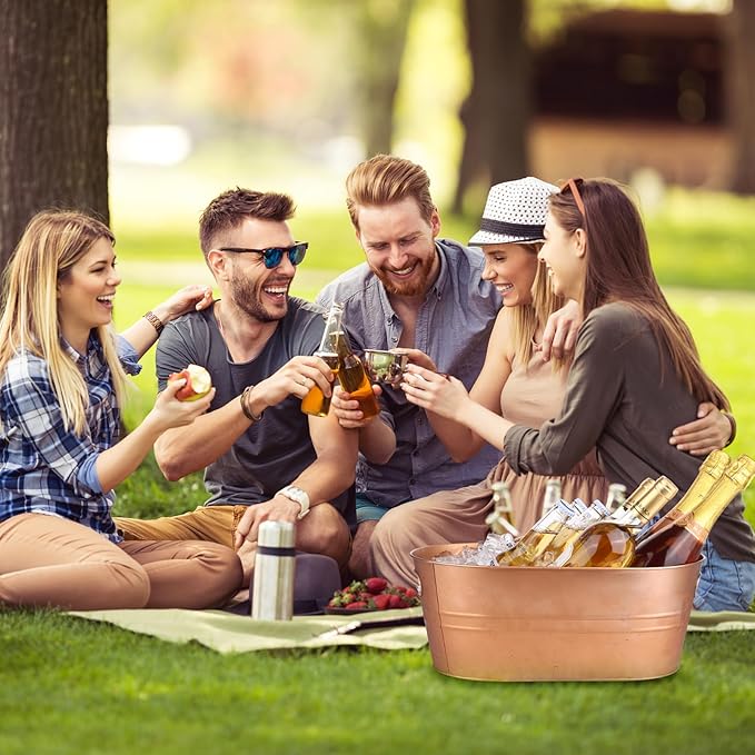- 【MULTI SCENARIO APPLICATION】- The beverage tub is a versatile accessory that can be used in a variety of settings. Whether you're camping in the great outdoors, having a picnic with family, or hosting a formal dinner party, the metal tub can fit in seamlessly.