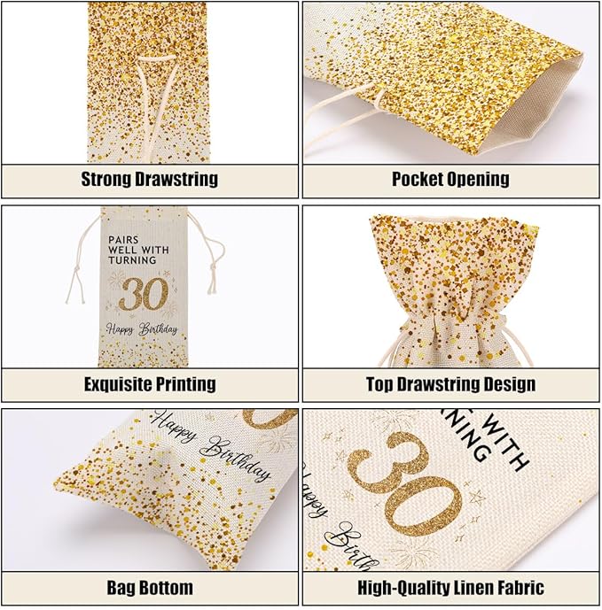 30th Birthday Wine Bag 30th Birthday Decorations for Her 30 Year Old Birthday Gifts for Women Men Coworkers Lady Friend Him Her Bestie Anniversary Wine Bags