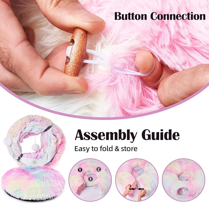 - Premium Materials & Easy Maintenance - Crafted with luxury plush fabrics for superior comfort, this machine washable pet bed ensures hassle-free cleaning. The non slip bottom pet bed design keeps the tunnel securely in place during vigorous play. As a foldable storage cat tunnel, it's perfect for compact homes and quick cleanup.