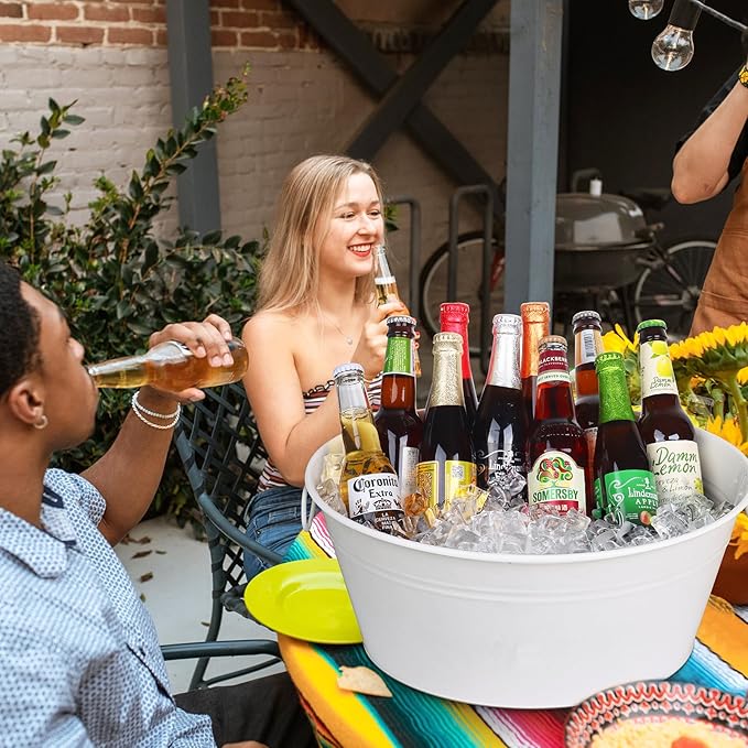 Ice Bucket, Oval Beverage Tub, Galvanized Bucket and drink Cooler for Parties, Ice Tub with Handles for Beer Sparkling Whisky Wine Cocktails (3.5gal) (White*2)