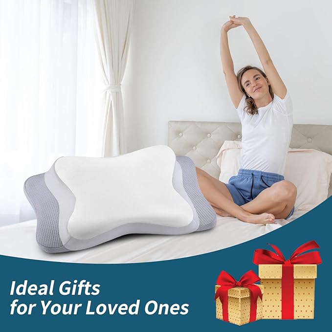 - Premium Ergonomic Contour Pillow: The cervical pillow adopts a unique butterfly shape design and combines with traditional pillow, greatly relieves neck pain and reduces shoulder pressure to achieve a healthy sleep, waking up in the morning without pain. The contoured design keeps your neck and head at the right height and provides excellent support during sleep.