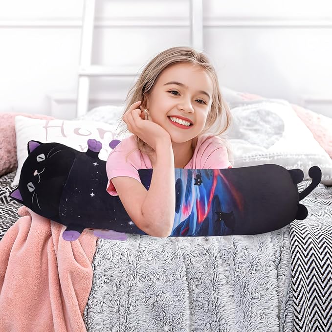 - CAT PLUSH TOY GIFTS--Cat toys for kids,the cat plush pillow is a kawaii squishy gift specially designed for kitten lovers,kids,girls.The sleeping cat pillow is a perfect gift for birthday, Christmas, Valentine's Day, Thanksgiving and other memorial day.