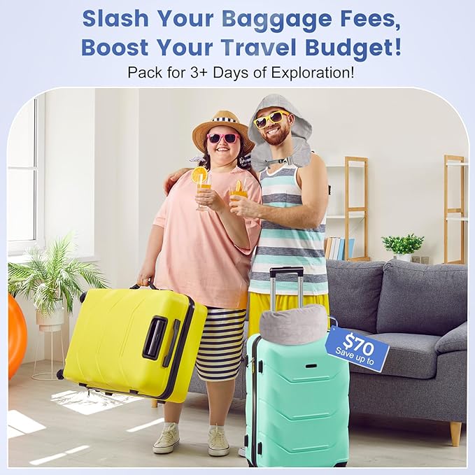 - Versatile Comfort with Practical Hood: This stuffable neck pillow for travel isn't just a pillow; it's a smart packing solution. Fill it with clothes for up to 3 days of travel. The integrated hood adds privacy and warmth, ideal for long flights or layovers