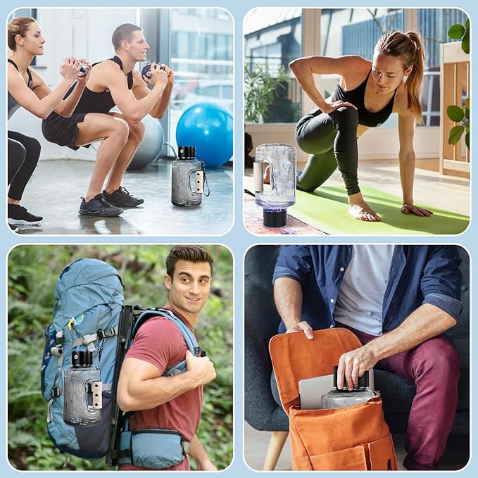 - 【Portable Sports Water Bottle】 2MM thickened food-grade PC material, strong and durable, and does not contain any harmful substances. Hydrogen water bottle with power band lid and handle is ergonomic and easy to drink and carry. Leather grip handle non-slip and sweat-proof, nylon rope belt is easy to carry, so that you can replenish hydrogen water at any time, perfect for work, sports, hiking and travelling.
