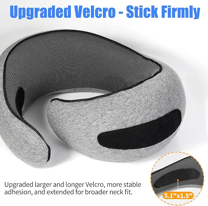 - Upgraded Velcro: This travel neck pillow features larger (5.1"x1.5") and stickier velcro for a secure fit. Easily adjustable, the neck pillow 2024 accommodates various neck sizes, preventing your head from flopping or leaning onto your seatmate