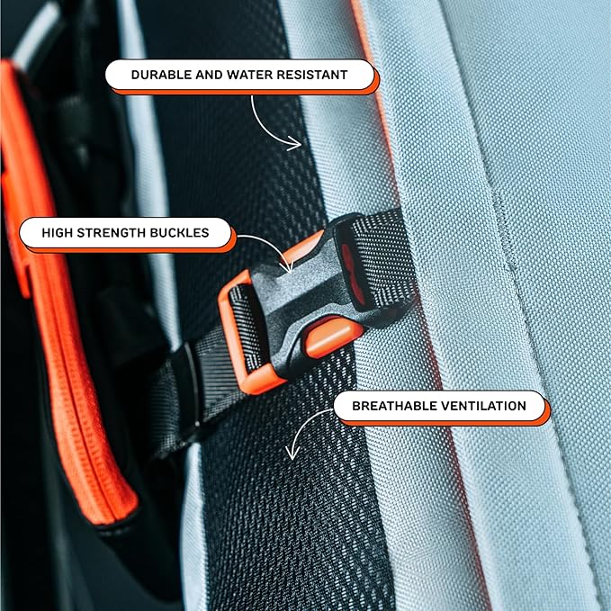 - BREATHABLE AND LIGHTWEIGHT: We used water resistant and breathable fabric to keep your dog cozy and dry. The Floof Guard 1.0 keeps your baby snug and strapped-in without constricting their widdle arms. Great for traveling, hiking, biking or camping.