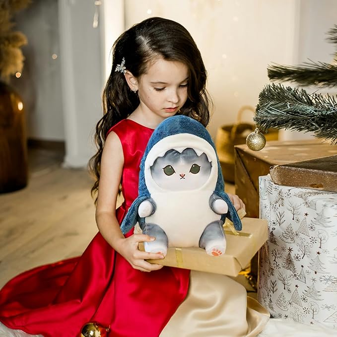 - IDEAL FOR ALL AGES: Whether it's for a toddler's bedtime stories or a tween's after-school relaxation, this Shark Cat Plush Toy is the perfect companion for kids of all ages. Its cute appearance and cuddly feel make it a hit among cat and shark lovers alike. Make a splash at your next gift-giving occasion with this shark cat plush toy. Whether you're buying for a cat lover, a shark enthusiast.