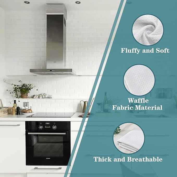 - SUPERIOR MATERIAL:Our kitchen towels are made of high quality microfiber waffle weave that is highly absorbent, fast drying.It is upgraded honeycomb structure whic,Can be used for drying hands and dishes, sopping up a quick mess, cleaning counter tops.