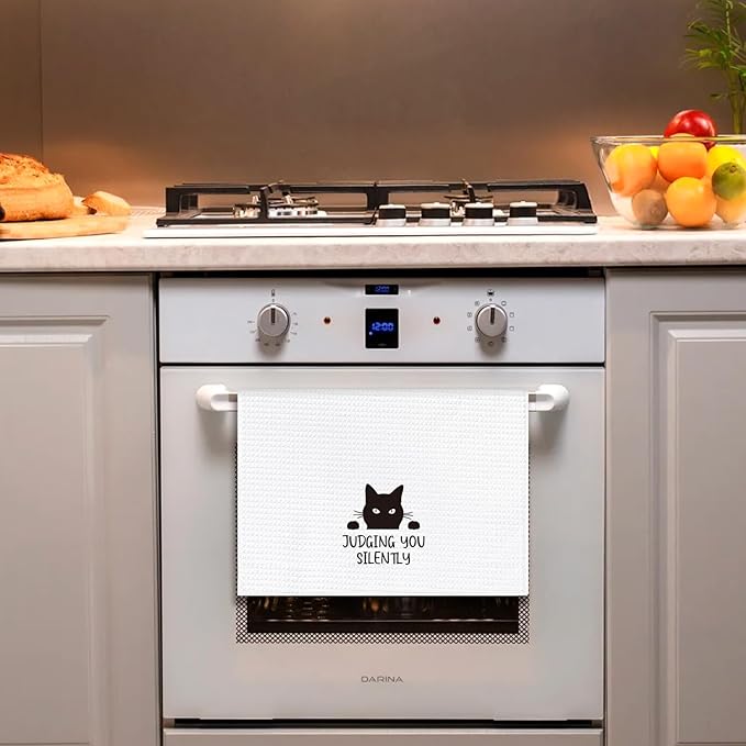 Judging You Silently,Funny Kitchen Towels,Dish Towels for Kitchen Decor,Funny Joked Themed Dishcloth,Black Cat Dish Towels,Housewarming Gift for Cat Lovers,Funny Kitchen Gifts