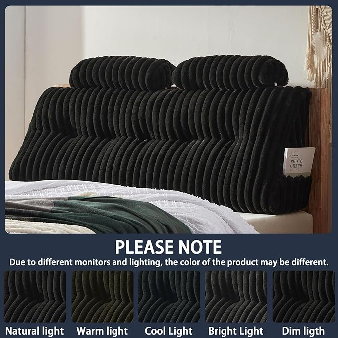 - [New Faux Fur Headboard Pillow] The new fabric is different from traditional flannel or cotton and linen fabrics. This new product uses high-density and high-weight faux fur fabric, which not only brings you a touch close to real fur and a glossy luster, but also creates a warm home atmosphere.