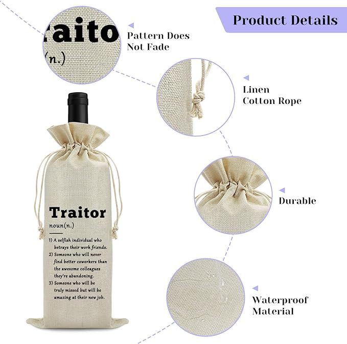- Farewell Gifts for Coworker: This going away wine bag is a great way to say goodbye, farewell, or commemorate their going away. It's suitable for coworkers this burlap drawstring wine bag gift can make them feel valued and cared for. It will be most surprised goodbye gift to make that special person in your life feel cherished and loved.