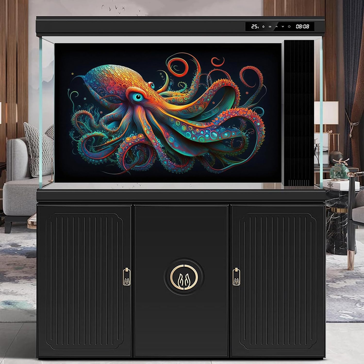 Octopus Aquarium Background Abstract Colorful Octopus Terrarium Background Glowing Octopus on Black Background Fish Tank Backdrop Poster Wallpaper Decorations Vinyl 36x24in
