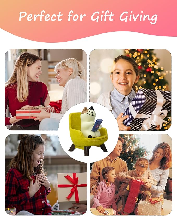 - Cute Cat Design: This cute cat figurine features a charming design with a cat playing phone on sofa